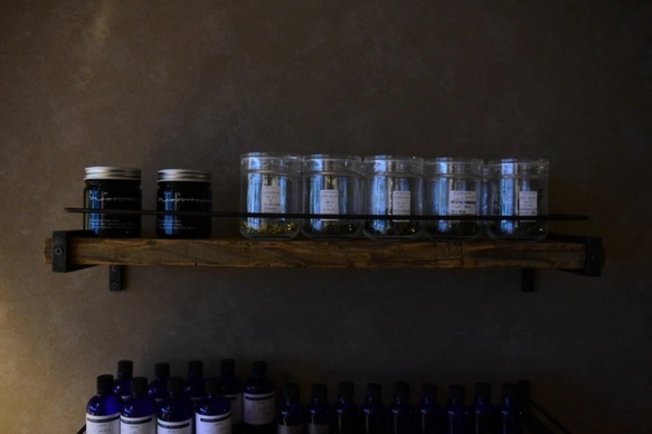 大抵、棚受け金物にはL型に対して斜めの補強を入れてありますが、設計者が第一に拘ったことは筋交無しの美しいフォルムです。壁と木のラインに沿って追従し、四点のビス固定により抜群の強度と極端に無駄を削ぎ落としたストイックなビジュアルを実現しました。