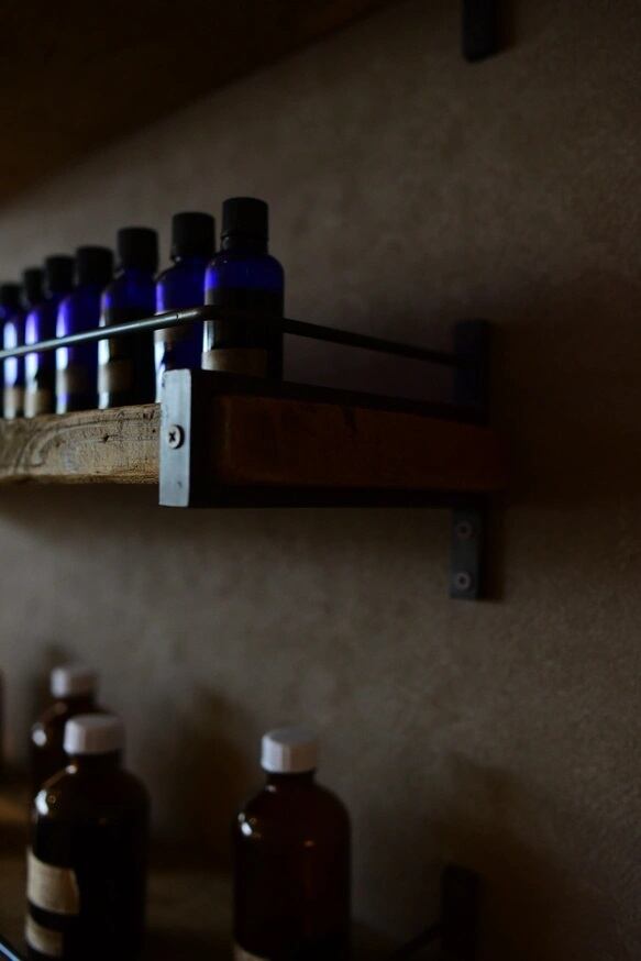 黒に塗装したりといったことはせず、鉄部は生地のままで蜜蝋ワックスで仕上げ、鉄本来の自然な肌をだしています。木部はステイン着色ではなく、珈琲の出涸らしを再度煮出して作る当工房オリジナルの100%自然由来の珈琲染料にて染めています。鉄部の蜜蝋ともに有機溶剤やケミカルなものをは一切不使用としていますので、誤ってお子さまが舐めてしまったりしても問題ありません。